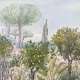 Papier peint panoramique motif paysage provençal, végétal, nature, gravure