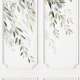 Papier peint motif trompe œil, 3D, feuilles d'olivier et moulures, couleur blanc, vert de gris