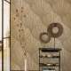 Un effet sablé incroyable Comme dessinées sur le mur, les feuilles en éventail du motif Semiramis offrent un ballet hypnotisant. Leur rendu spectaculaire combine effet 3D et grandeur XXL.