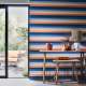 - Sur un intissé texturé évoquant la fibre du papier, des rayures verticales sont tracées. Elles associent de nouvelles couleurs : nude et bois de rose, sorbet et miel. Certaines références seront totalement mates, d’autres trouveront au milieu de leurs rangs un coloris bronze, réalisé à l’encre métallique. Des mariages audacieux de teintes, inspirés de la palette du Cap Ferret.
