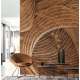Ce panoramique spectaculaire donne l’impression de pouvoir pénétrer dans un ouvrage de vannerie monumental. Comme un immense cocon minutieusement tressé, son coloris naturel réchauffe la maison, on imagine presque la délicieuse odeur de l’osier flotter alentour…